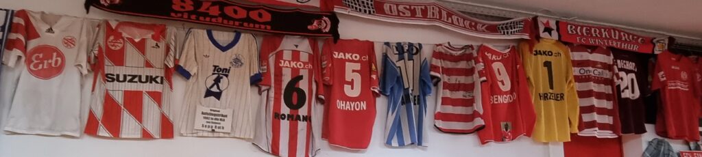 As demonstrated by the array of shirts in one of the stadium bars, FC Winterthur has welcomed some famous visitors the club since it was established in 1896. The team’s famous Rot-Weiss colours can also be seen away from the Schützi and on the city streets.