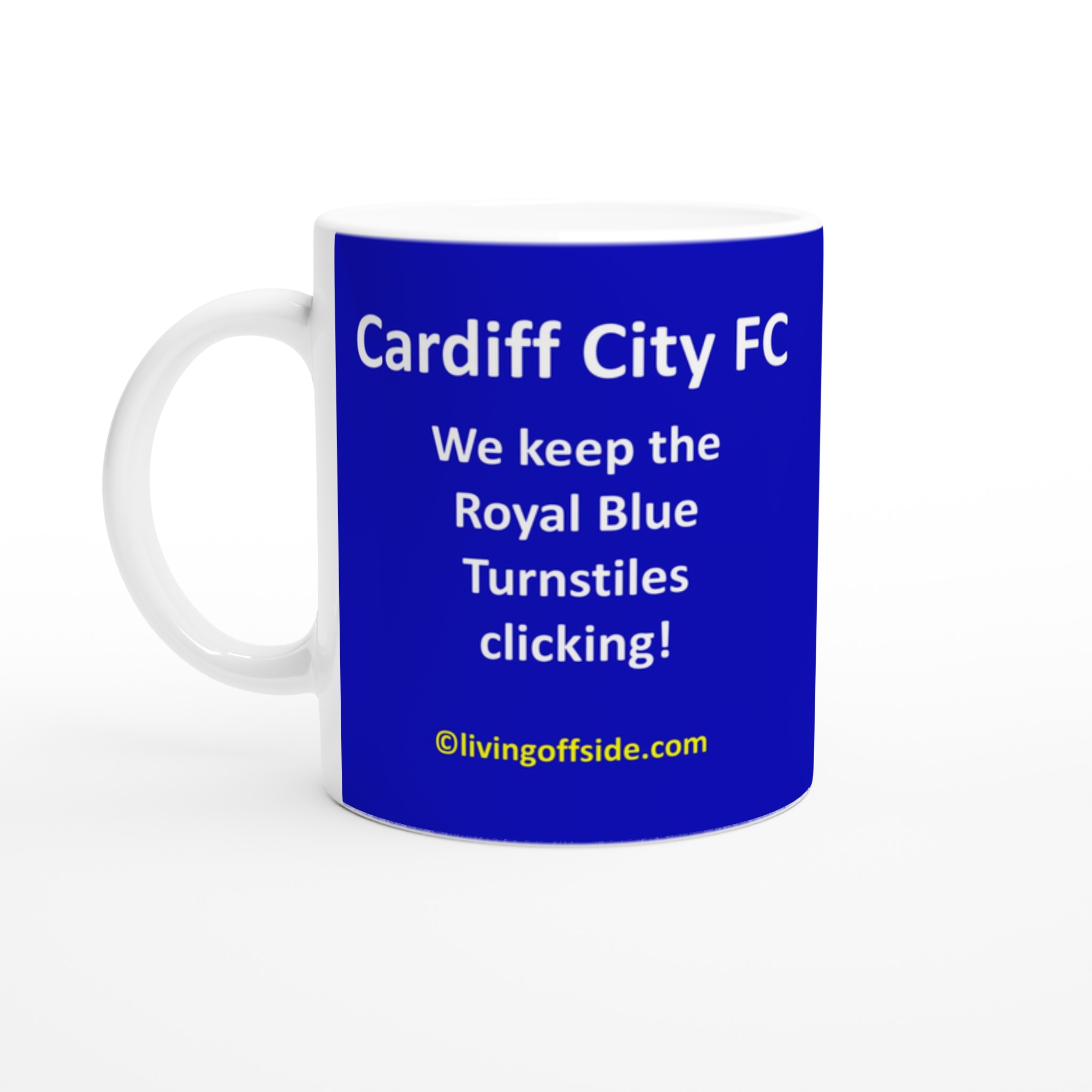 Show your support for Cardiff City FC with our stunning ceramic mug featuring the proud slogan “We keep the Royal Blue turnstiles clicking.” Ideal for any beverage, this mug enhances your daily routine with a hint of team spirit. Enjoy your morning coffee or hot chocolate in style!